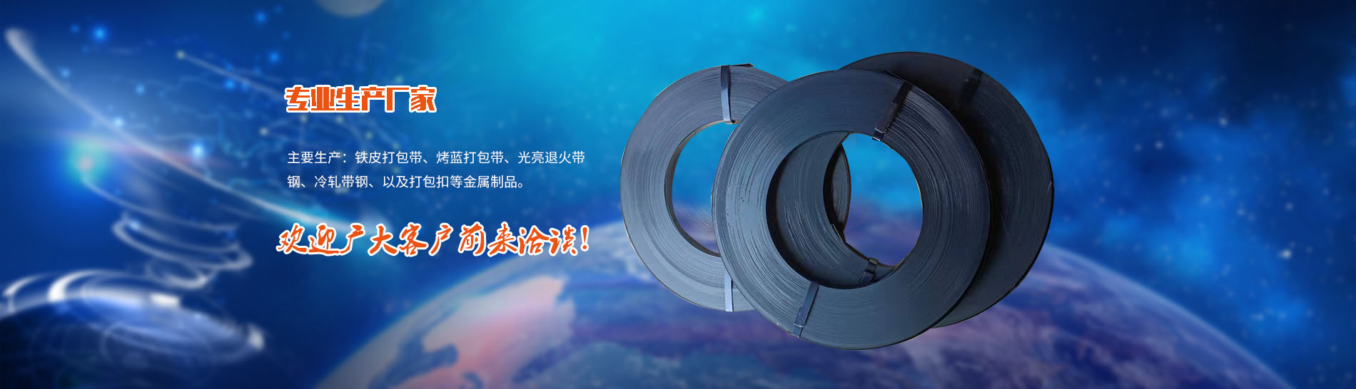我公司的主要生產:烤漆打包帶、鍍鋅打包帶、鐵皮打包帶、烤藍打包帶、光亮退火帶鋼、冷軋帶鋼、打包鋼帶以及打包扣等金屬制品。公司具有完善的符合國際標準的質量保證體系,從原材料采購開始,到生產的各個環節,直至產品的包裝,入庫和發貨,力求精益的品質和完善的服務。